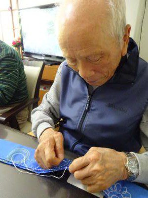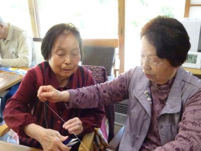 糸を通す人・切る人で分け協力し合っていますね右斜め上右斜め上