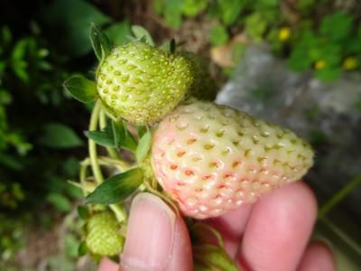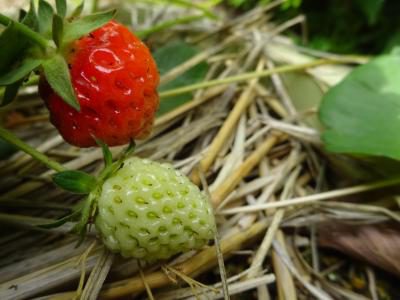 良いお天気で、お庭のイチゴさんも成長中