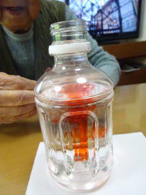 一つ目の実験ですが塩水と水の中に植物油を入れたらどうなるかの実験です