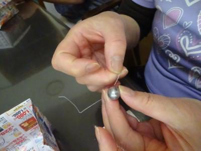 ガン玉に糸を通していきましょうましょうヽ(^。^)ノ