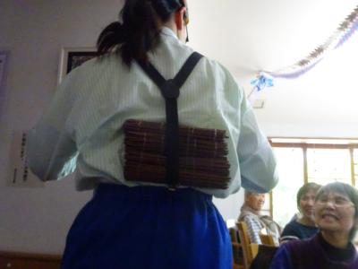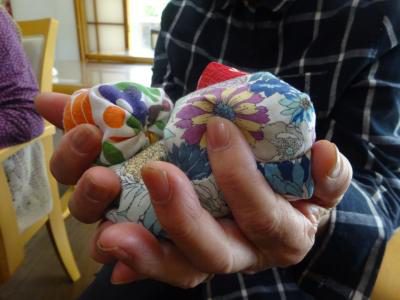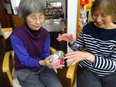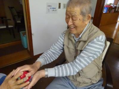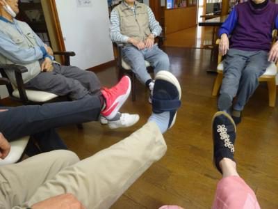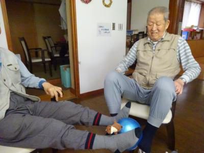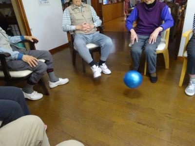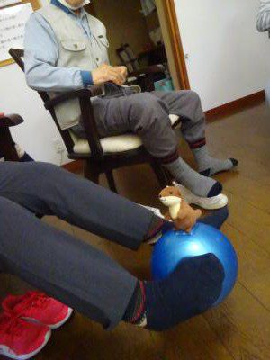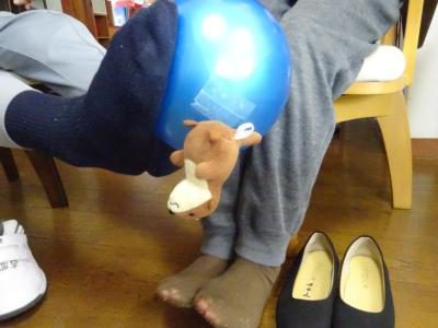 お次はボールを足で挟んで、隣の方にパスしましょう