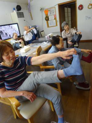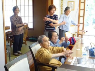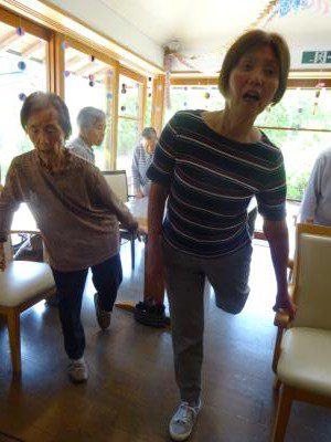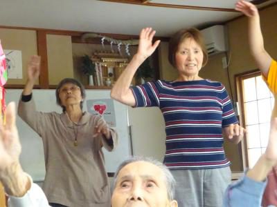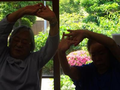 リズム体操でお腹いっぱいの体を起こしましょうるんるん (音符)るんるん (音符)