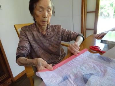 モデルにお母様に完成品を持って頂きましたうれしい顔手 (パー)