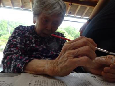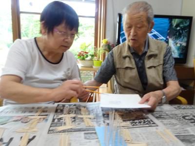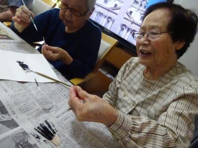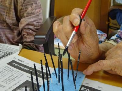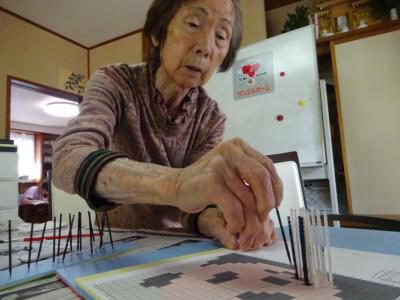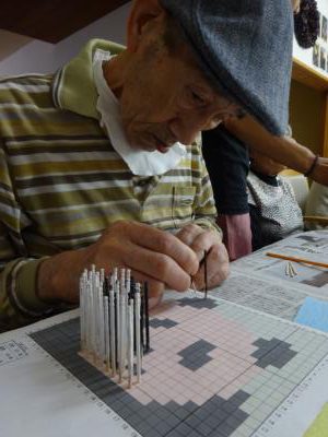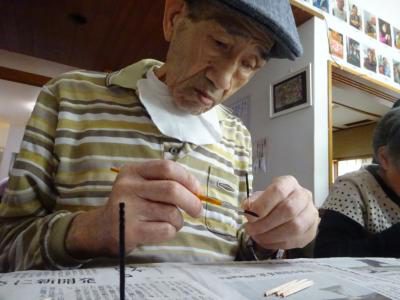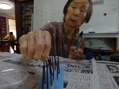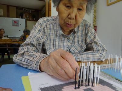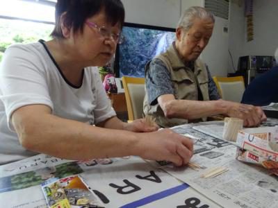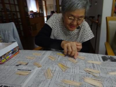 さて、今日のレクリエーションは楊枝アートに挑戦です