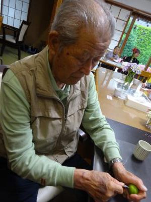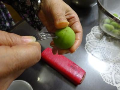 昨日頂いた梅の実を皆様と一緒につけていきました