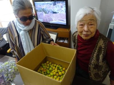 スタッフが、梅ジュースにすることをお母さんに伝えること、