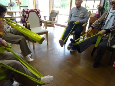 ラジオ体操の後は、セラバンドを使って足腰を鍛えましょう