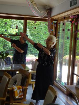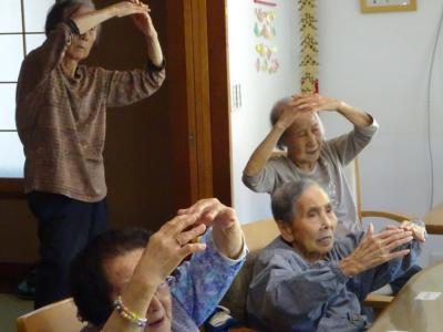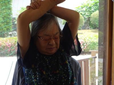 ラジオ体操もしっかりと伸び縮みしています指でOK