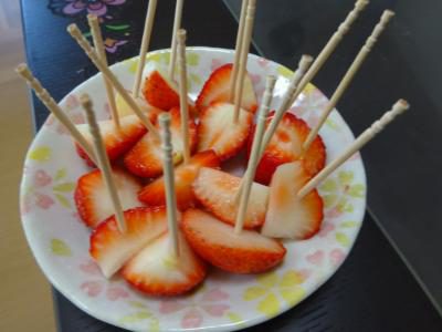 最後のイチゴも収穫できたので皆さんで味をみましょう目がハート (顔)