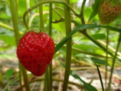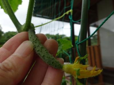 のソフィーと、お庭で育てているイチゴとキュウリの状態を