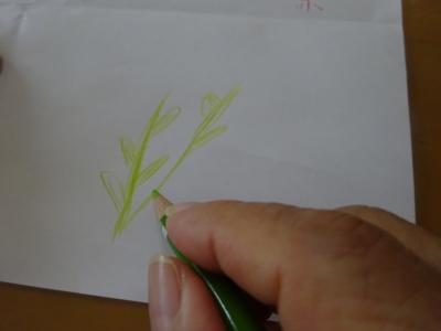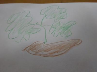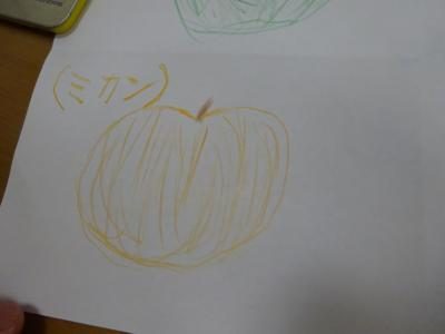 赤・緑・だいだい・黄色い物を個々で連想して絵を描いて