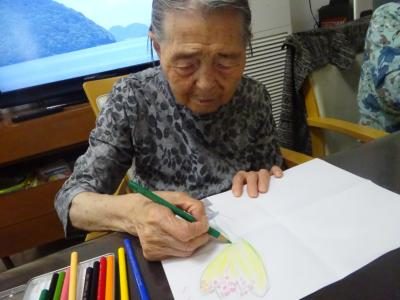 午後のレクリエーションは「色遊び」です