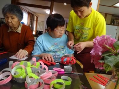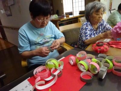 7月14日の6周年記念のお祭りに向けての飾り作りです