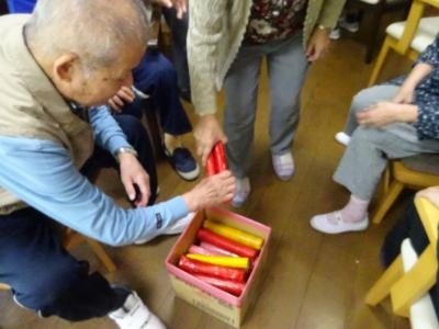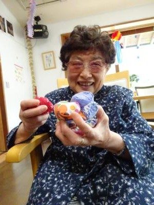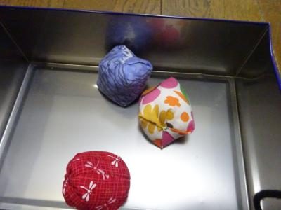 箱の中に、何個お手玉が入るか挑戦してみましょうかわいいかわいい
