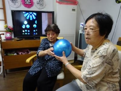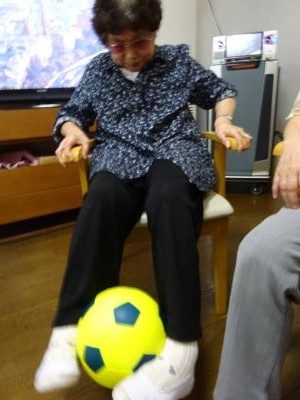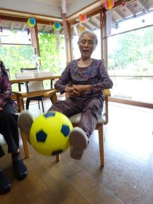お次はボールを使っての運動をしていきましょうわーい (嬉しい顔)