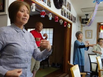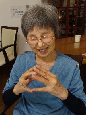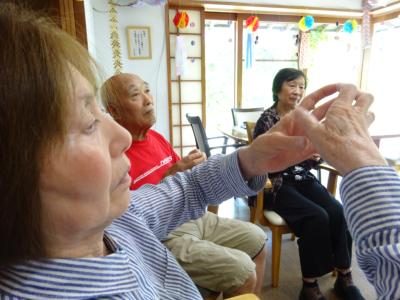 午前の体操の最後は・・・ 口腔体操ですわーい (嬉しい顔)