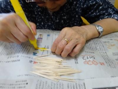 レクリエーションは楊枝を使っての第二回目 前回よりも
