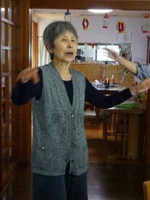 バトンを使ってばち替わり、皆様と歌いながらリズムよく