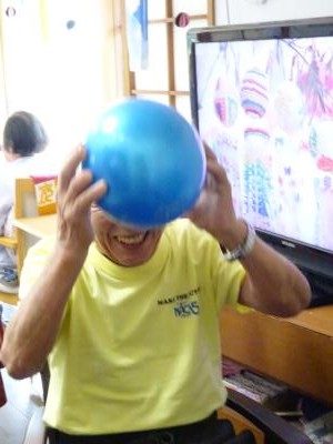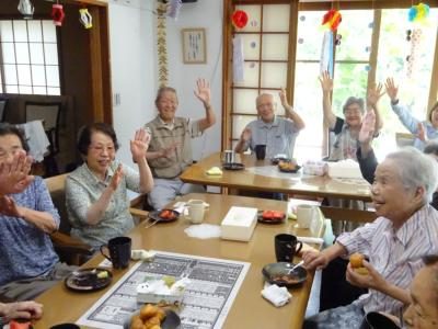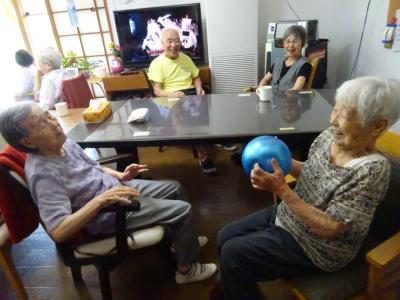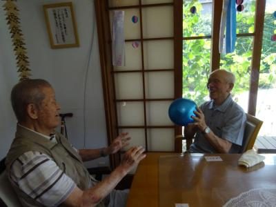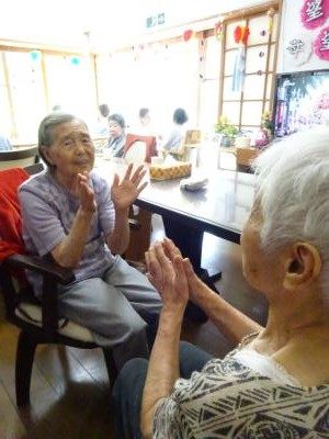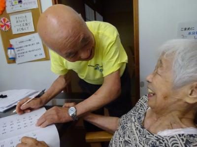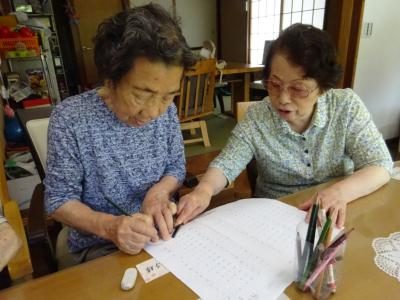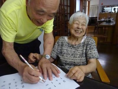 脳トレーニングでは、協力し合って楽しく行います