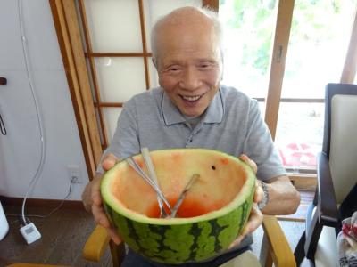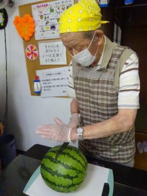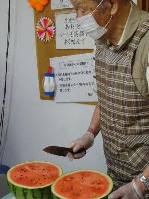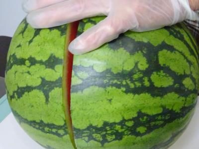 それでは、スイカをカットして頂きましょう