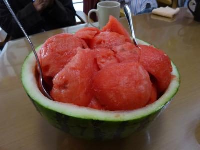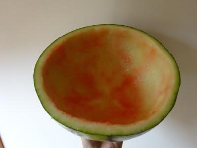 スイカをスプーンでくりぬき。。