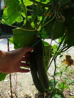 昨日小さかったキュウリが1日で5㎝以上も大きく