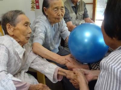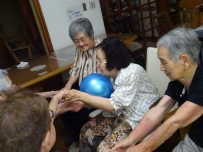 向かえ合わせで・・手を組んで・・ボールを運びます。