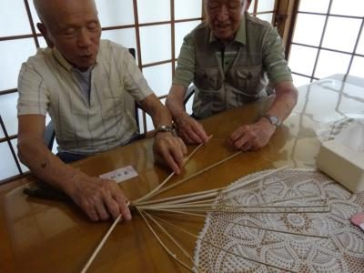 骨組みを糸を使って広げてくださっています左斜め上右斜め上