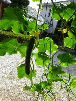 日曜日で1日収穫できなかったので🥒が大きくなりました