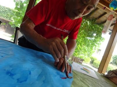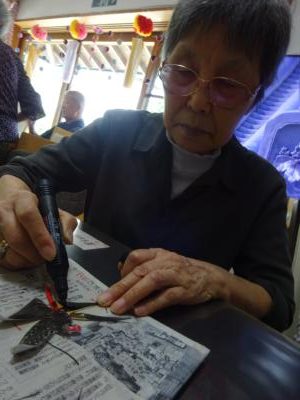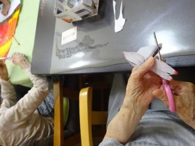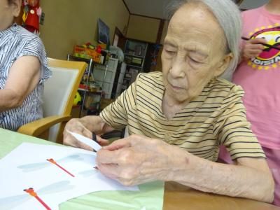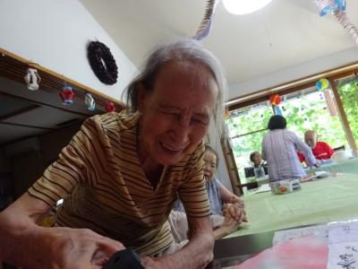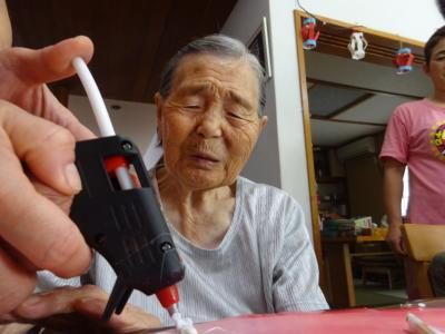 お次は、紙とうちわの骨組みをグルーガンでつけましょう