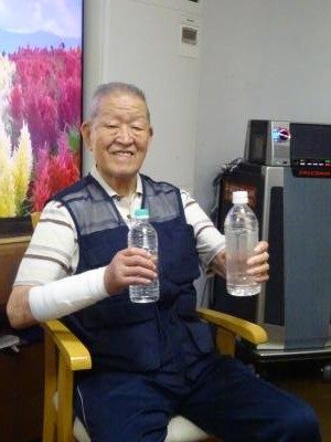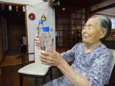 お次は、水入りペットボトルを使って上半身を鍛えましょう