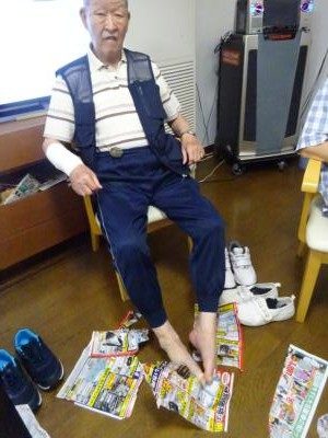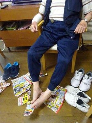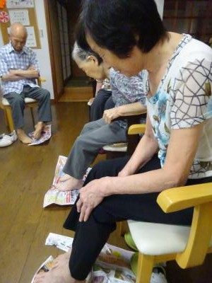 足の指や足裏を使って、広告をビリビリ破りましょう