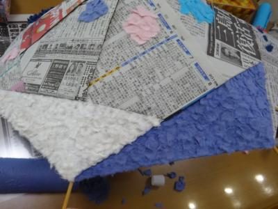 何種類かの和紙をうまく重ならないよう貼り付けていきます