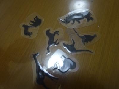 最初に小さな動物の切り抜きを貼っていきましょぅあっかんべー
