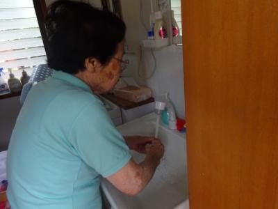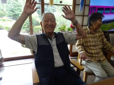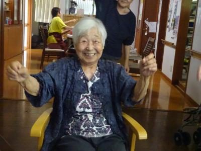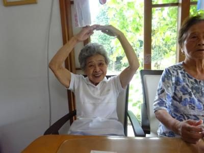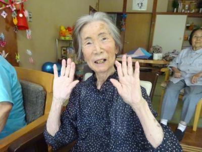 手 指の体操は、もちろん笑顔で