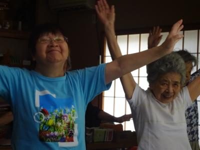 ラジオ体操も、楽しく 元気よく