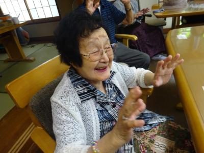 手の体操は、楽しく笑顔で