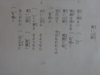昔懐かし歌の歌詞を所々空欄にし、言葉を思いだして