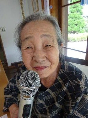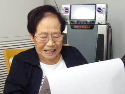 今朝の歌はマイクを持って「里の秋」を