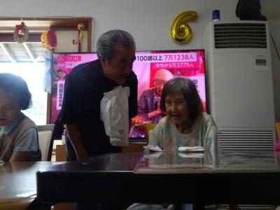 堀口オーナーが皆様に今日は敬老の日のプレゼントを
