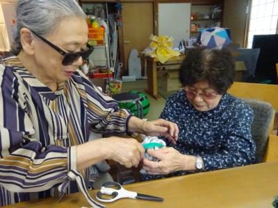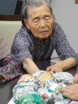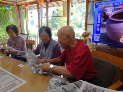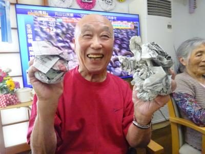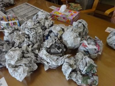 ↑こちらのお父さんは丸めた新聞紙でお手玉して遊んじゃいました