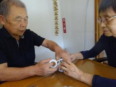 ↑↓1人だとこの作業が少々大変なので、2人1組で協力して留めます