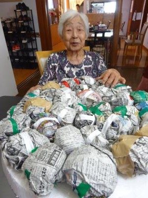 ↑こんなに沢山の新聞を丸めて何になるでしょうか~