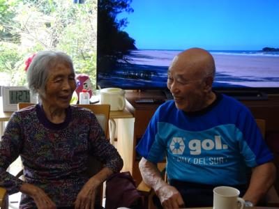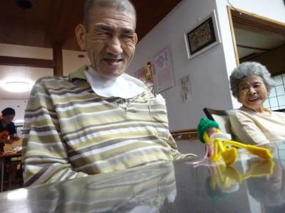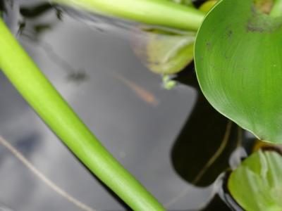 昨日、ご利用者様が持つて来てくださったホテイアオイの下で