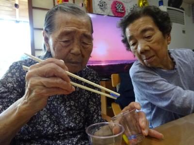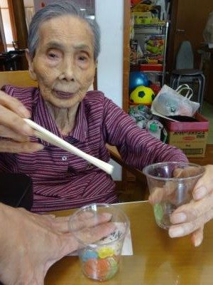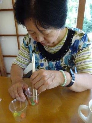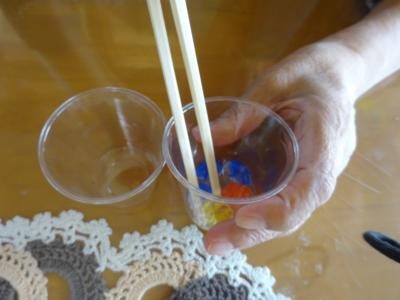おはじきを箸でつまみましょう