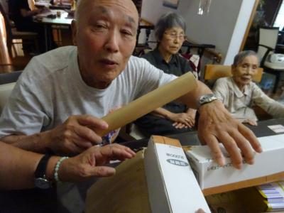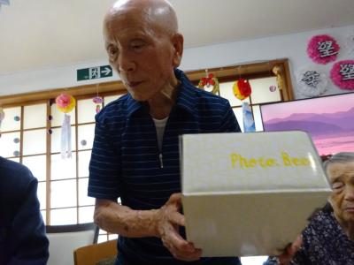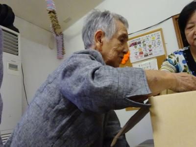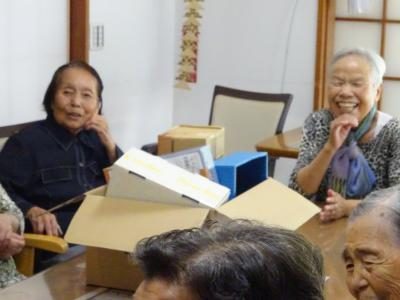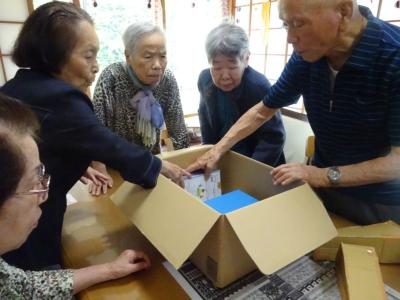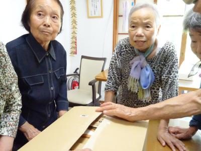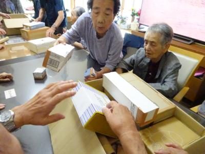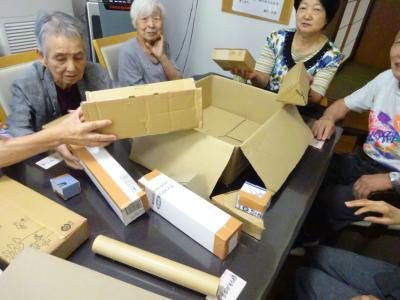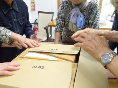 本日のレクリエーション色々な形の箱を綺麗に詰め込みましょう