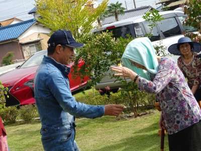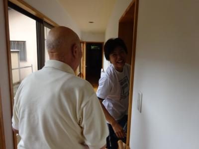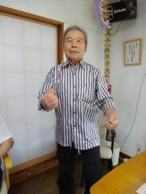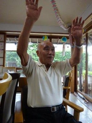 お父様 踊りながら スタッフに連れられてグッド (上向き矢印)