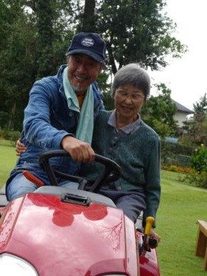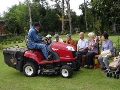 芝刈機に乗ったオーナー 芝生を整えてくださっていましたぴかぴか (新しい)ぴかぴか (新しい)