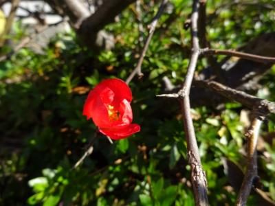 木瓜の花の狂い咲きウッシッシ (顔)手 (チョキ)