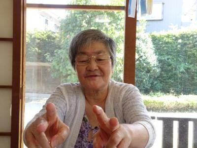 小さくなって伸ばして~~~~うれしい顔手 (パー)